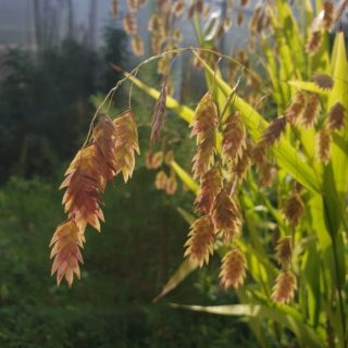 A. 보통 초여름~가을 사이에 꽃차례가 형성되며, 납작한 보리 이삭 같은 모양을 보여줍니다.