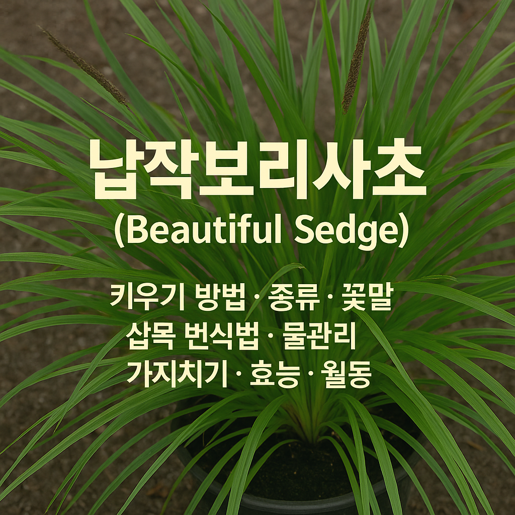 납작보리사초(Beautiful Sedge)는 사초과(Cyperaceae)에 속하는 다년생 식물로, 독특한 잎의 질감과 납작한 보리 이삭 같은 꽃 모양이 매력적입니다. 그라스류 정원 조경에 자주 사용되며, 관리가 비교적 쉬워 초보자도 도전하기 좋은 식물입니다. 이번 글에서는 납작보리사초 키우기 방법, 종류, 꽃말, 번식법, 물관리, 가지치기, 효능, 월동 관리까지 정리해 드립니다.