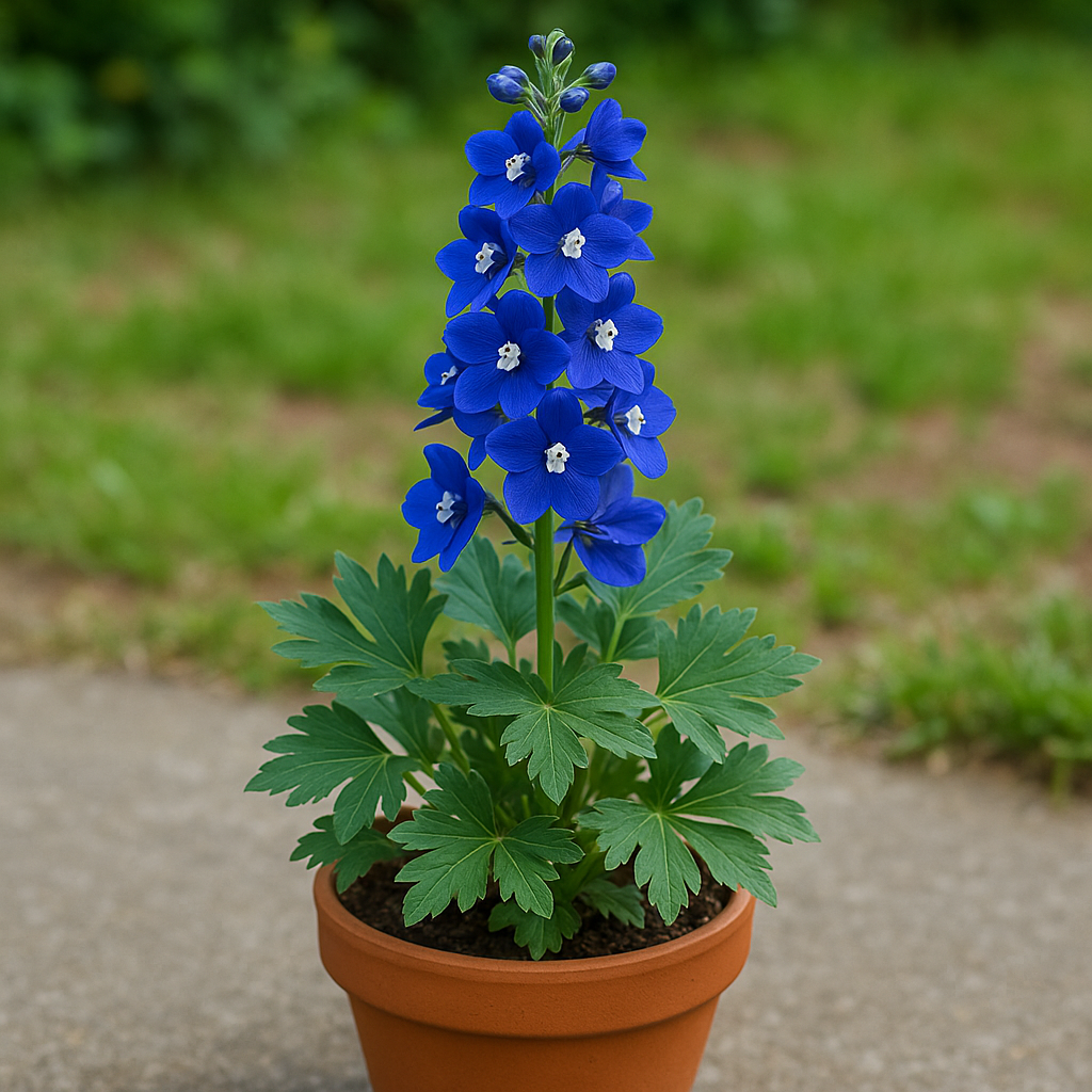 - 델피늄 엘라툼(Delphinium elatum): 가장 대표적인 직립형 품종, 파란색·보라색 꽃