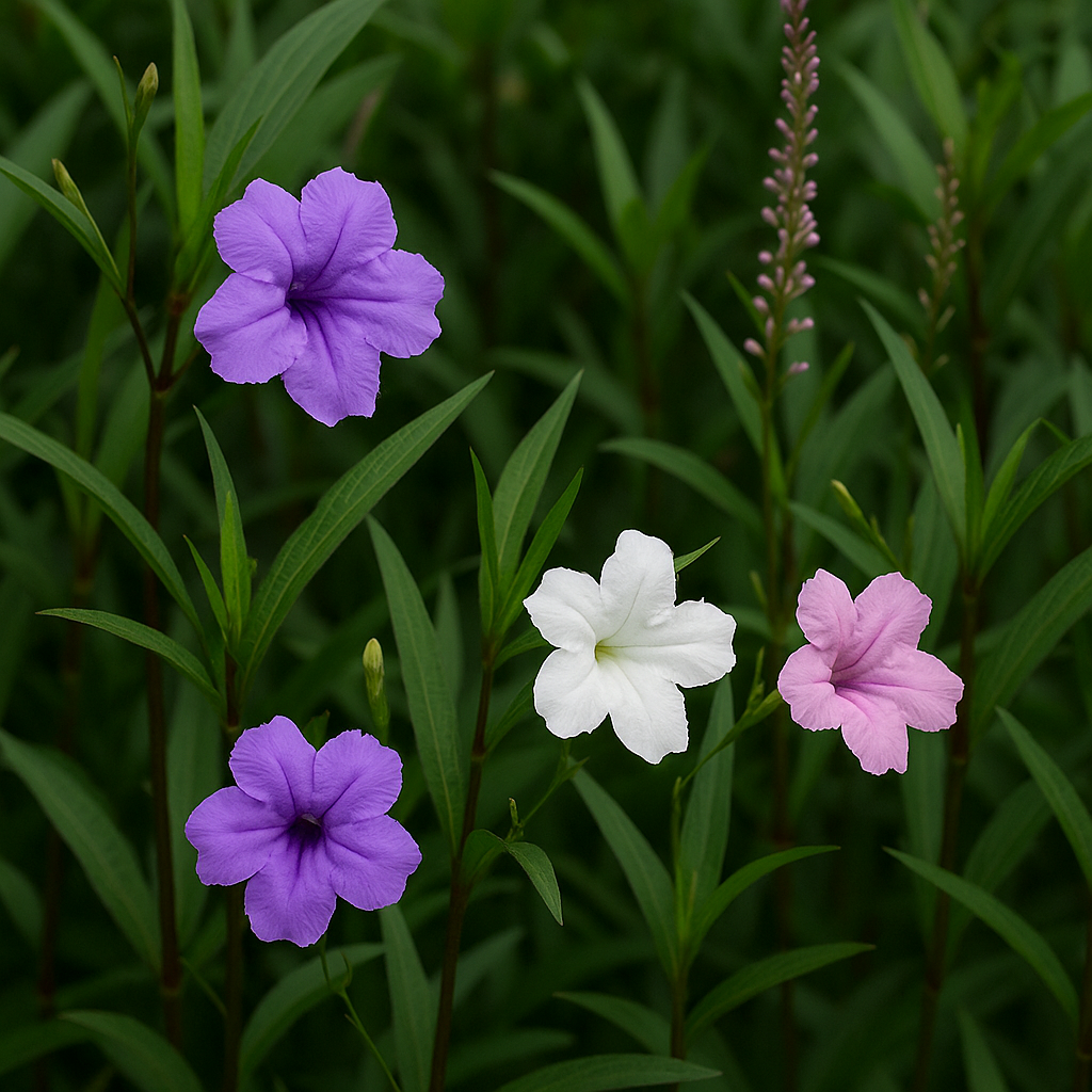 - 루엘리아 카롤리니아나(Ruellia caroliniensis): 분홍빛과 보랏빛이 어우러지는 야생종.