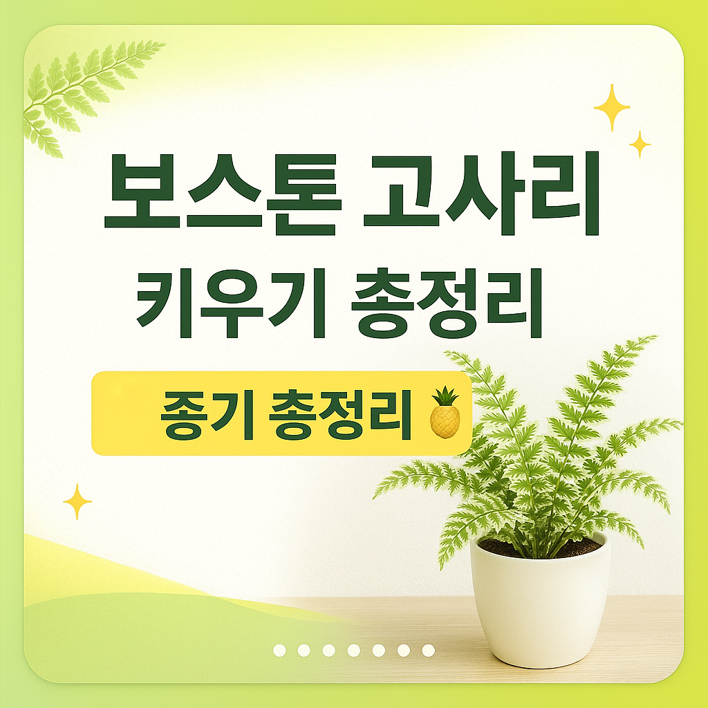 초보자도 쉽게 키울 수 있는 무늬 보스턴 고사리는 일반 고사리보다 잎 끝의 화이트·라이트그린 무늬가 아름다워 인테리어 식물로 사랑받습니다. 하지만 예민한 생육 환경을 가진 만큼, 물주기와 습도 관리가 핵심입니다. 아래에서 무늬 보스턴 고사리를 건강하게 키우는 모든 방법을 한 번에 정리했습니다.
