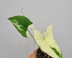 | 잎 형태 | 하트 모양 또는 화살촉형, 흰색·연녹색 무늬 |