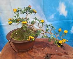 분재국화의 아름다움은 가지치기와 조형에 달려 있습니다.