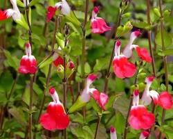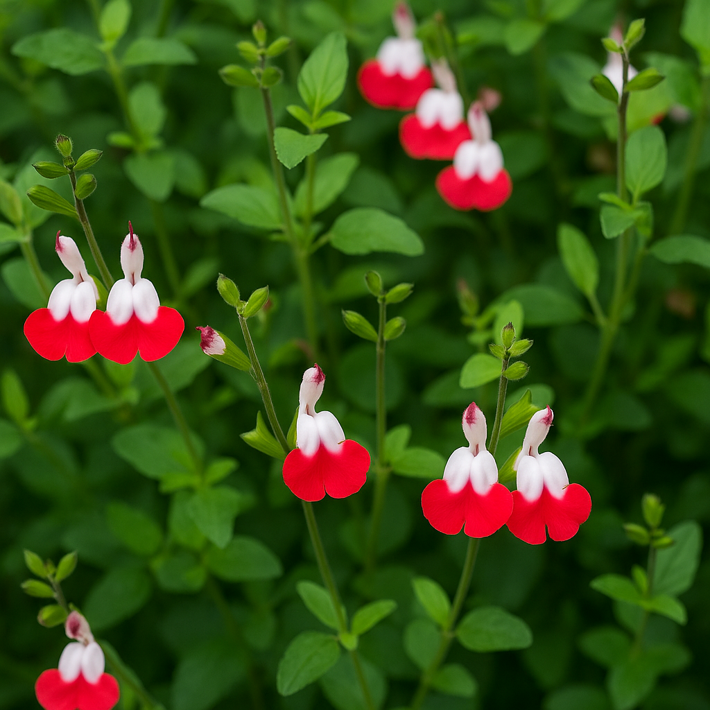 - 핫립 세이지(Hot Lips Sage) — 붉고 흰색이 섞인 두 톤의 꽃이 매력적이며 향이 강한 편입니다. 여름~가을까지 오래 꽃을 감상할 수 있습니다.