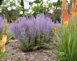 - 러시안 세이지(Russian Sage) — 보랏빛 꽃이 은은하게 피며 향기가 부드럽습니다. 내한성이 강하고 건조에도 강해 노지월동이 가능합니다.