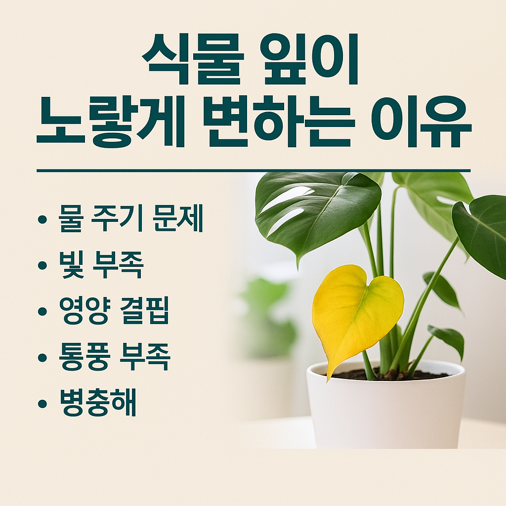 오늘은 식물 잎이 노랗게 변하는 주요 원인과 해결법을 정리했습니다.
