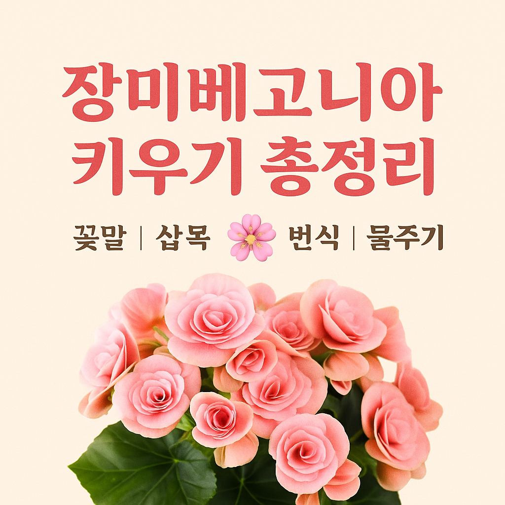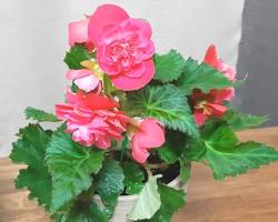 장미베고니아는 자연광 아래에서 가장 화사한 색을 내며, 꽃이 오래 피는 특성 덕분에 실내 화분용·선물용으로 인기가 높습니다.