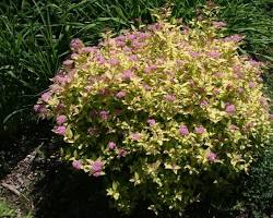 - 황금조팝나무(Spiraea japonica ‘Gold Mound’): 황금빛 잎과 분홍색 꽃의 대비가 아름다워 화단용으로 인기.