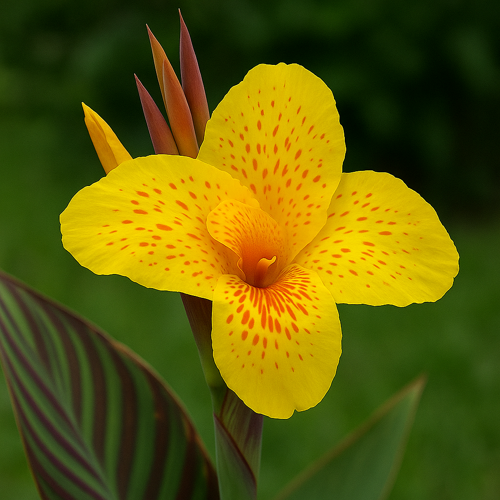 - 얼룩잎 칸나 🌿 : 잎에 무늬가 있어 관엽식물로도 가치 있음