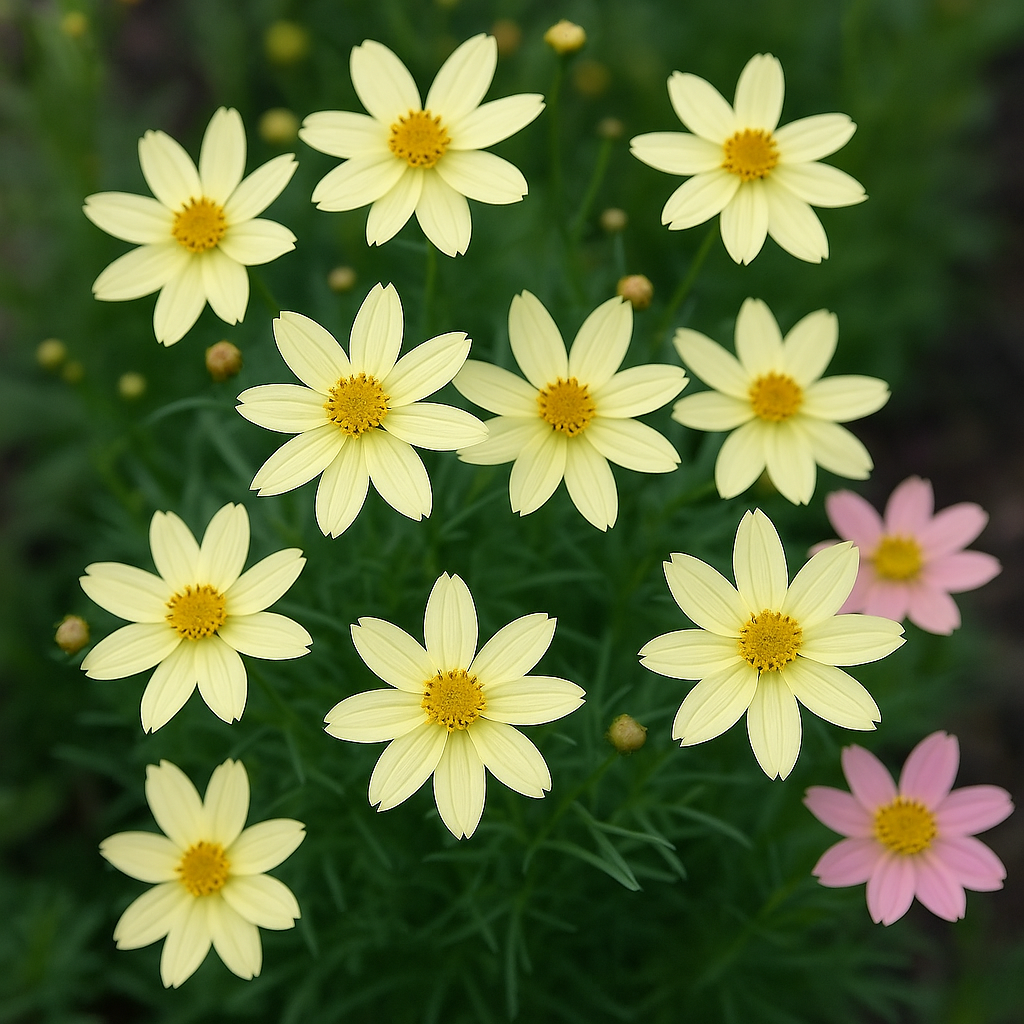크레메 브륄레 (Crème Brulee) | Coreopsis verticillata ‘Crème Brulee’ | 크림색 | 부드러운 파스텔톤, 잎이 가늘고 정원용으로 적합 | 40cm |