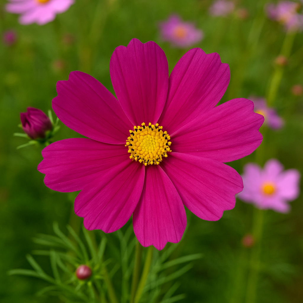 - 일반 코스모스(Cosmos bipinnatus) — 가장 흔한 분홍·흰·빨간색 꽃. 들판형 대표종.