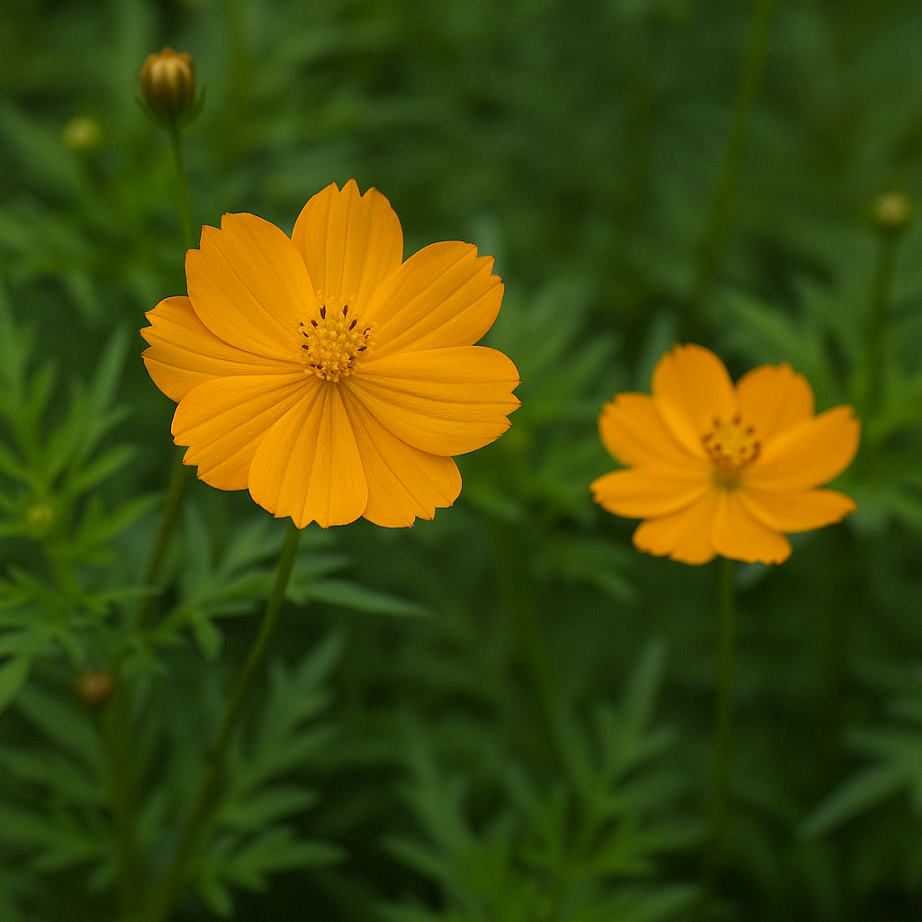 - 황화 코스모스(Cosmos sulphureus) — 노랑·주황빛으로 여름에도 잘 피며 내열성 강함.
