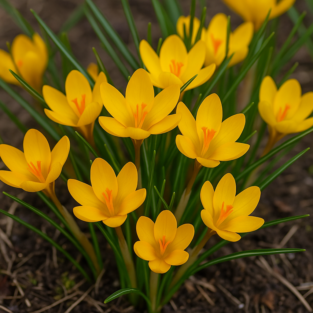 - 크로커스 크리시안더스 (Crocus chrysanthus): 황금빛 꽃잎으로 인기 높은 종.