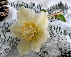크리스마스 로즈는 추위에 강한 다년생 초본으로, 흙 속 뿌리줄기에서 해마다 새로운 꽃대를 올립니다. 화려한 장미와 닮은 모양이지만, 실제로는 미나리아재비과에 속하는 식물이에요.
