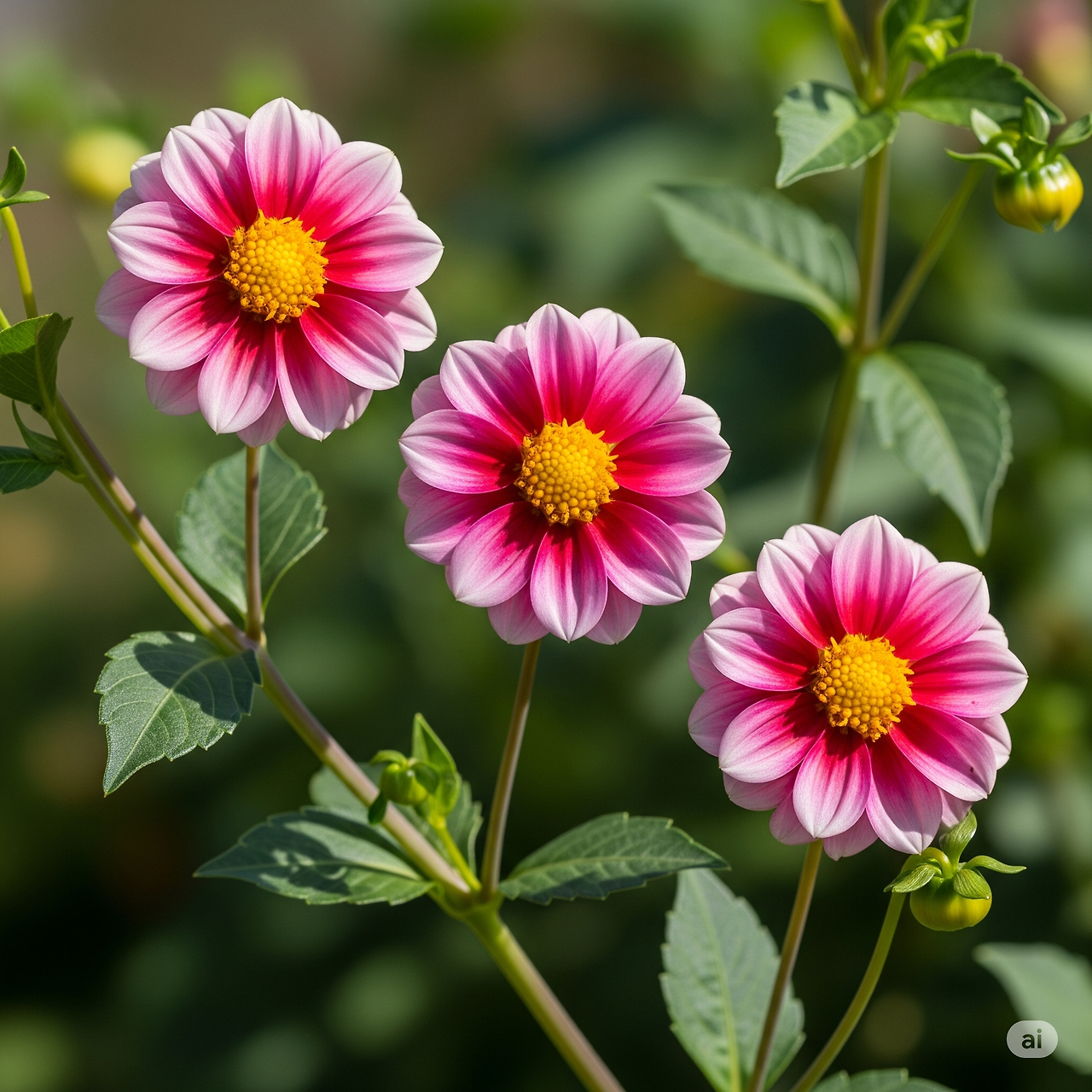 싱글 다알리아 이미지 - 한 겹의 꽃잎으로 이루어져 단순하면서도 깔끔한 아름다움을 자랑합니다. 벌과 나비를 유인하기 좋아 정원 생태계를 풍성하게 하는 데도 도움이 됩니다. 병충해에 비교적 강하고 재배가 수월합니다.