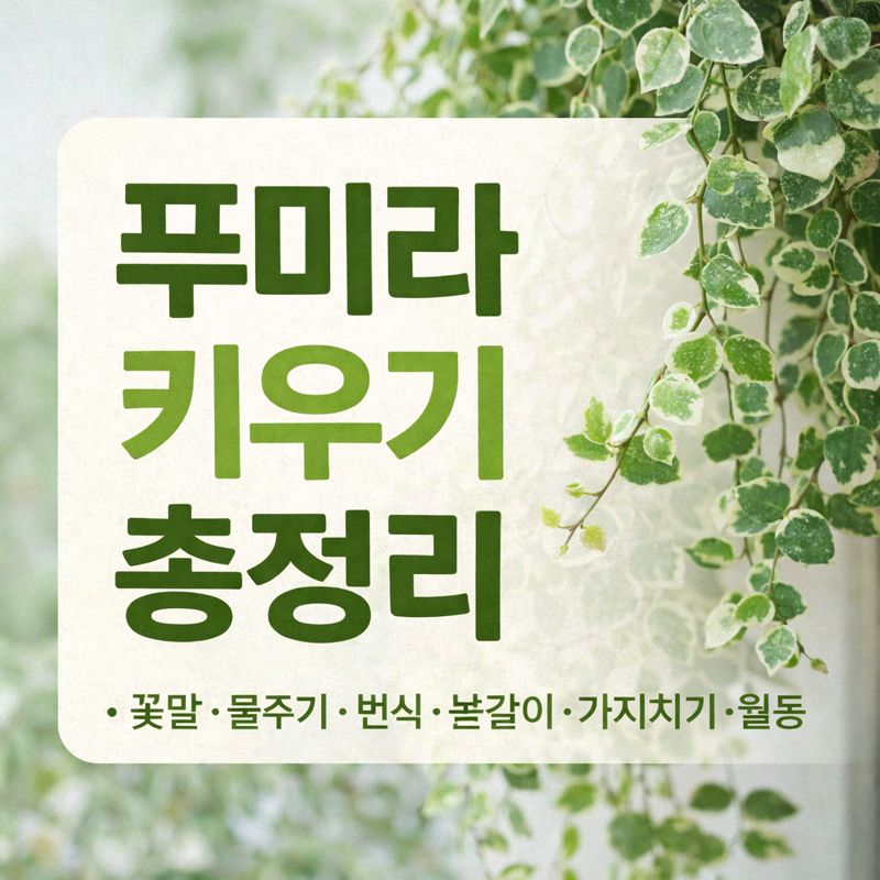 담쟁이처럼 자연스럽게 늘어지며 벽·화분·행잉 어디서나 잘 어울리는 푸미라(Ficus pumila)는 실내 플랜테리어 식물로 꾸준히 사랑받는 덩굴성 관엽식물입니다. 관리 난이도가 낮고 번식도 쉬워 초보자에게 특히 추천되며, 공간을 부드럽게 채워주는 장점이 있습니다. 이 글에서는 푸미라 꽃말, 물주기, 번식, 분갈이, 가지치기, 월동 관리까지 한 번에 정리해 드립니다.
