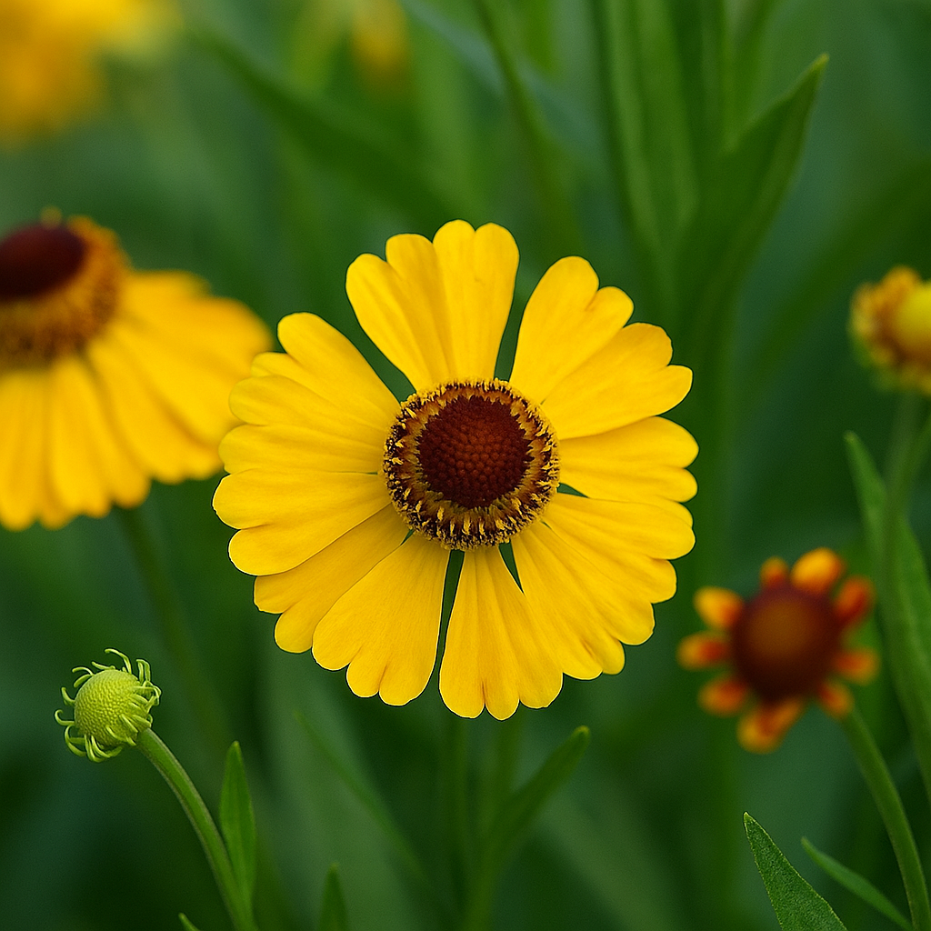 - 헬레니움 오텀날레(Helenium autumnale): 가장 흔한 품종으로, 노랑~적갈색 꽃을 풍성하게 피움.
