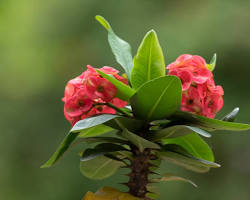 화사한 꽃을 오랫동안 감상할 수 있는 다육식물 꽃기린(에우포르비아 밀리)! 가시 돋친 줄기와 대비되는 사랑스러운 꽃이 매력적인 식물입니다.